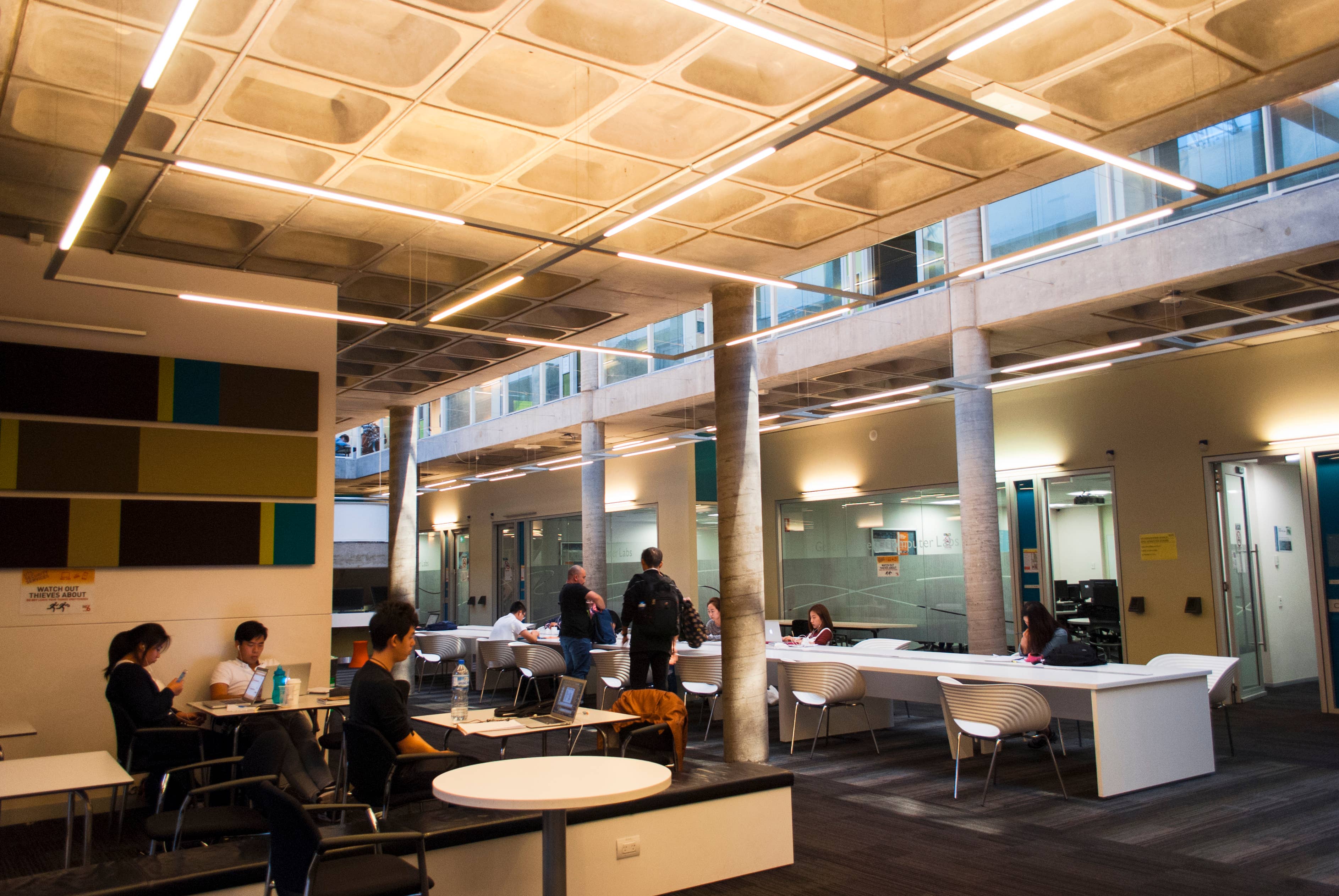 The ground level of Block C (pictured) provides a lightfilled courtyard to kick back with a coffee between class.